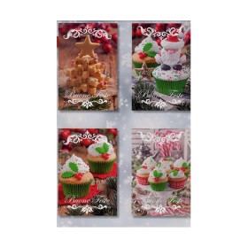 Confezione da 12 biglietti con stampa fantasia dolcetti natalizi. Busta Bianca.