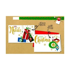 Biglietti e buste natalizi 11,6x17 cm leggermente sagomati e con glitter. Soggetti assortiti. Confezione da 12pz.