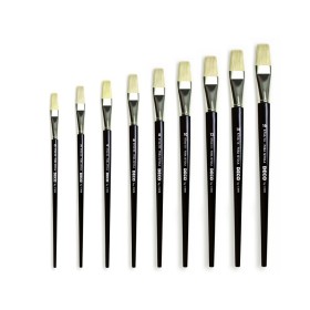 Pennello piatto pura setola. Manico corto verniciato nero. Confezione 12 pennelli n° 10. codice produttore: K577/10ean: 8004957014211