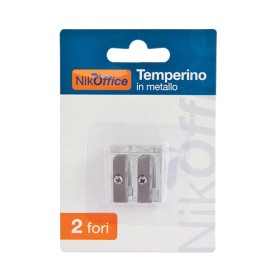 Temperino in metallo, 2 fori, con lama in acciaio.