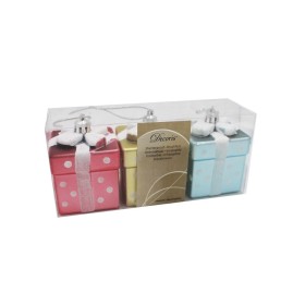 Confezione da 3 bocce sagomate a forma di pacchetto di natale colori assortiti.