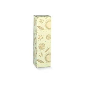 Scatole per bottiglia in cartone pesante fantasie assortite natale con tappo e cordino colorato. Dimensioni: 10x33 cm.