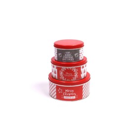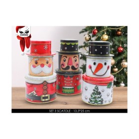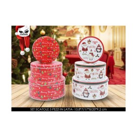 Set da 3 scatole di latta rotonde, fantasia natalizia.