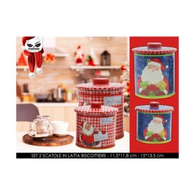 Set 2 scatole di latta rotonde con coperchio, per biscotti. Disponibili in 2 diverse varianti. Dimensioni: 11,5x11,8 - 15x13,5 cm.